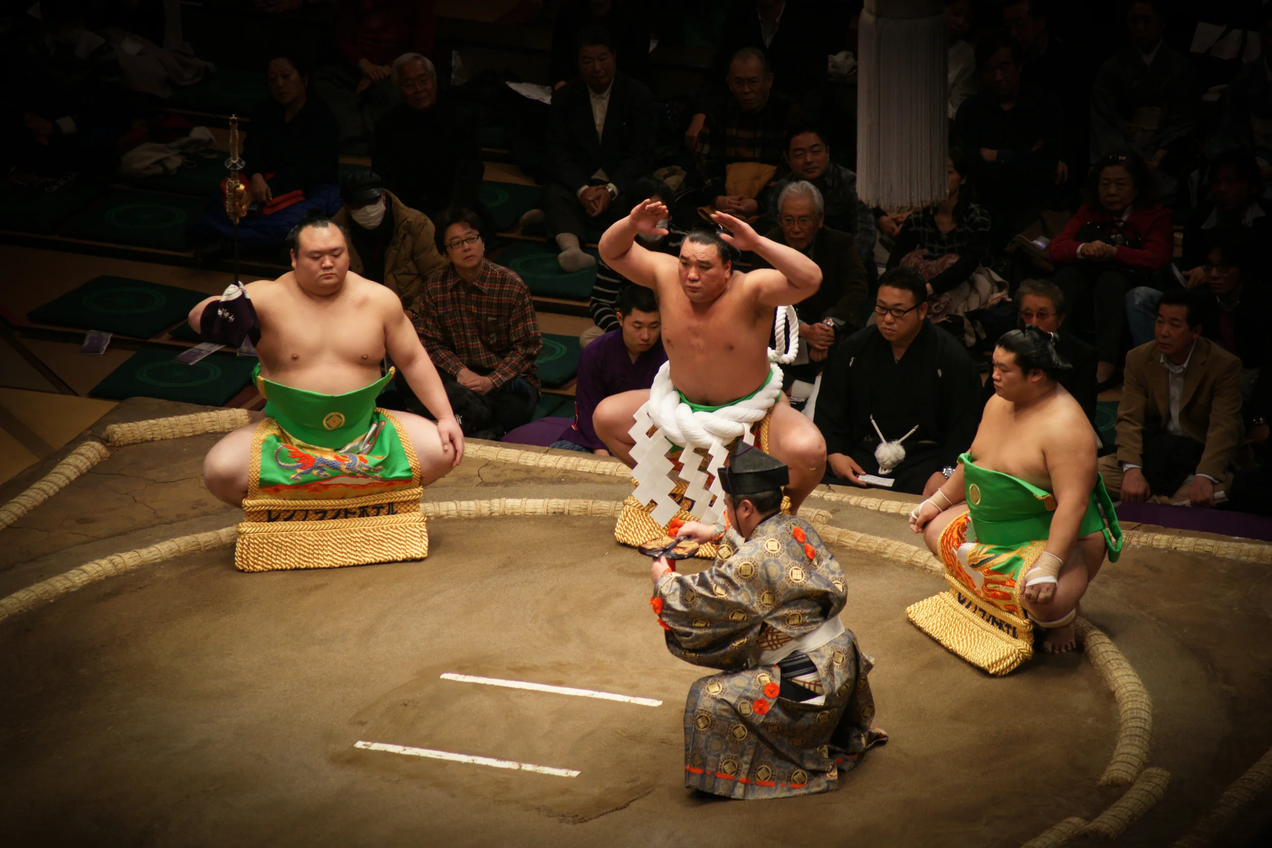 Well, I didn’t know I did until I saw a whole lot of them at the sumo tournament! Flat butts, lumpy butts, and even hairy butts--I was happy to see such ‘butt confidence’ on display. Apparently a lot of other people like these big butts too, because most tournament days sell out. The tournament takes place over 15 consecutive days, with each wrestler only having one match each day. It was sold out the day I attended and I was surprised to see that the facility was so big! A few people mentioned that the popularity of sumo has really grown over the past few years and now tickets are harder to get and more expensive (so I’ve been told).