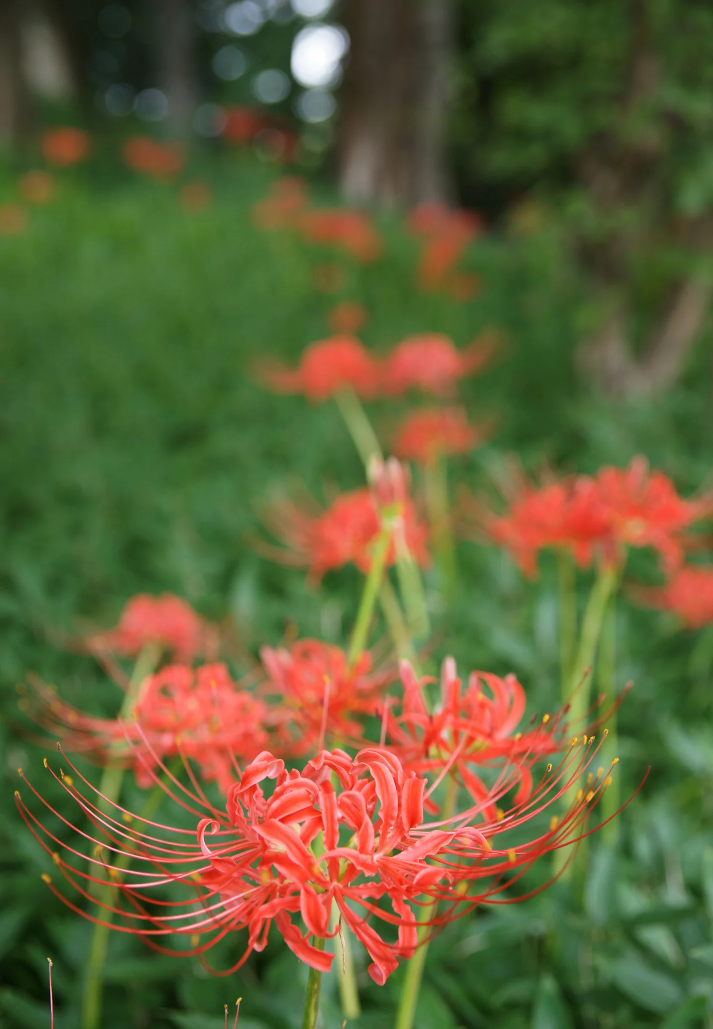 After about a 20 minute train ride, and a short walk thru busy city streets, you reach the gate. Walking into the garden is like entering another world, like stepping back in time. You walk in and set your eyes on the 17 acres of bright green scenery (and are then eaten alive by mosquitoes). There are paths throughout that lead you past different bridges, ponds, and temples that are scattered across the gardens. No matter what time of year you are there, apparently there is something to see, like cherry blossoms in late march, or iris’s in April, and the Japanese maples changing color in the fall. There are so many beautiful things to see, I could come here once or twice a month and still probably not see it all. The day I was there the spider lilies were in bloom. They are bright, bright red and contrast against the greenery all around creating a Christmas display of nature (in the middle of summer).